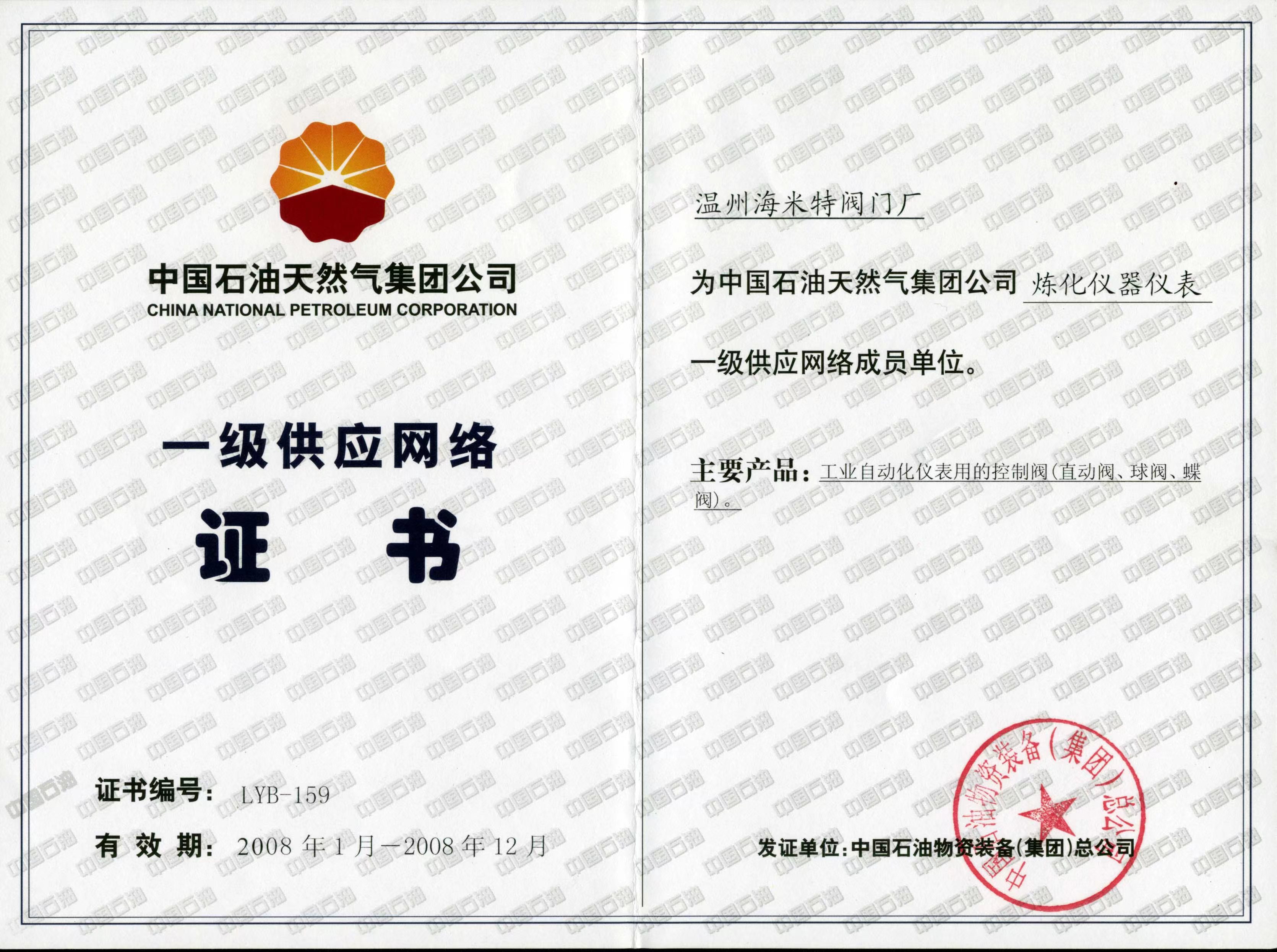 • 一级供应网络证书