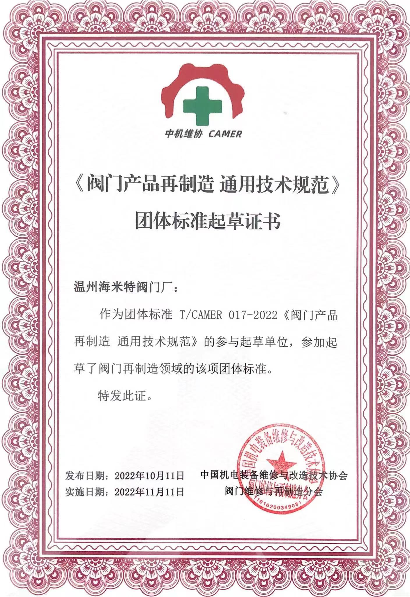 • 团体标准起草证书